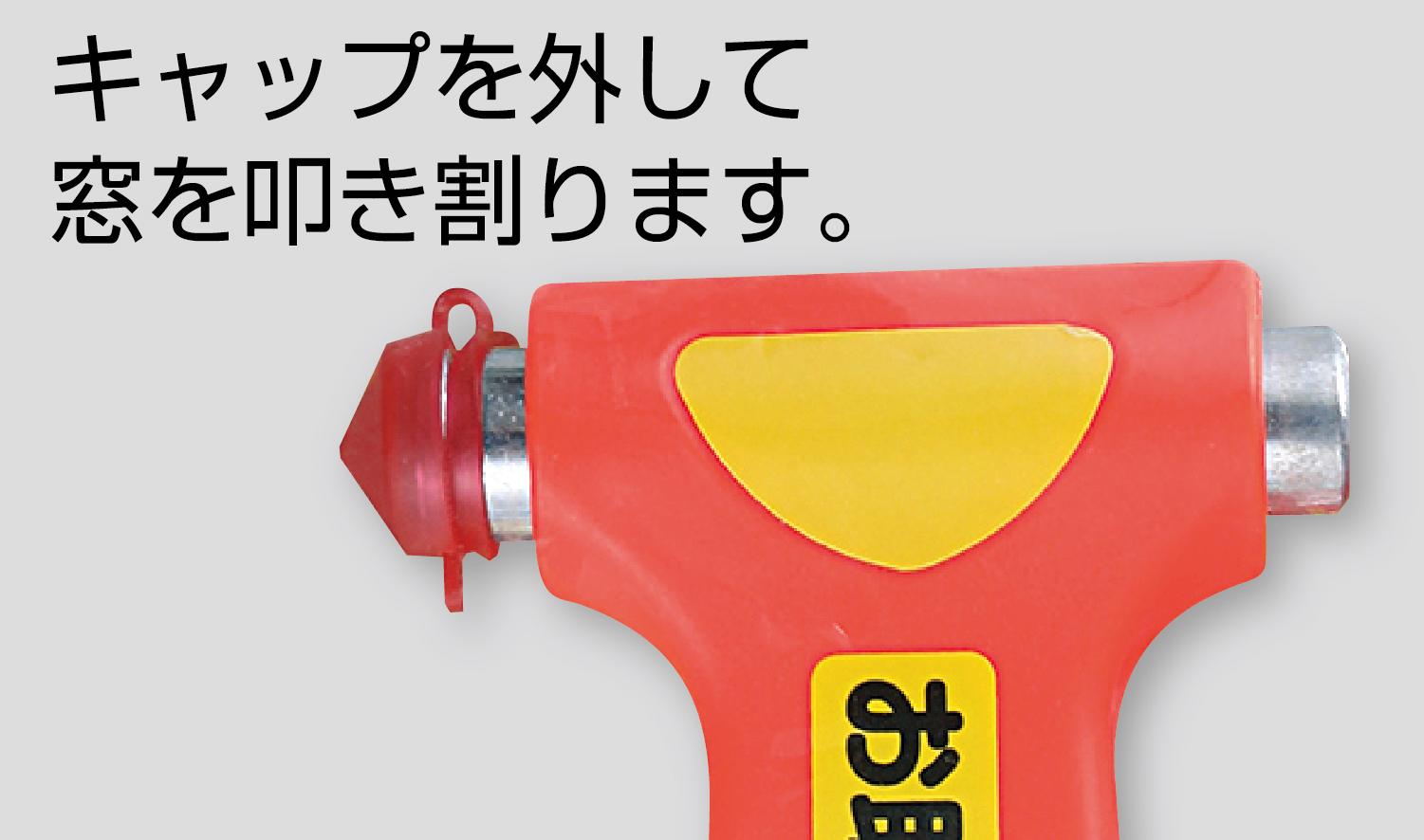 備え自力脱出のための緊急脱出用ハンマーをセット。